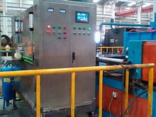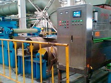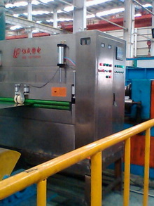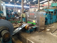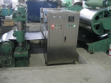 2007年公司通過引進國外先進的靜電涂裝技術,結合國內各類中小型金屬板(帶、絲)冷軋機組的實際應用情況,成功的研發(fā)出XCTZ-3型系列金屬板(帶)冷軋靜電涂油機、XCTZ-H101焊絲靜電涂油機、XCTZ-D刀帶靜電涂油機,其高壓力微流量雙流體霧化靜電涂油技術已在國內處于領先地位.每平米0.3克(單面)的涂油量已在實際應用中得到滿意的效果.